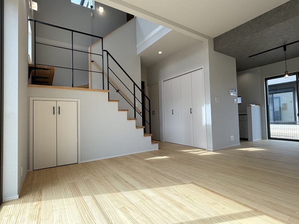 FLEXタウン今津シーサイドAで唯一、吹き抜けを採用したこちらのお家は、縦方向に視線が抜けるため、実際の広さ以上にゆったりとした空間のように感じます。