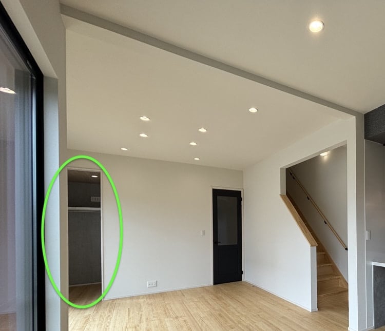リビングそばに設けられた、棚付きの特大収納にもご注目ください。