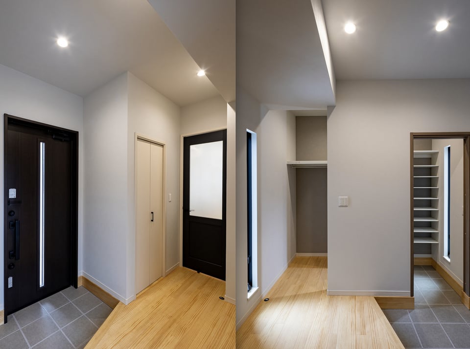 そして9号地の一番の魅力は、玄関ホールに設けられた大きなシューズクロークとウォークインクローゼットです!
