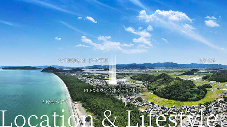 分譲地のすぐそばに「今津運動公園」、徒歩圏には福岡で人気No.1に選ばれた「大原海水浴場」。お子さまが思いきり遊び、家族で伸び伸びと過ごせる自然環境が整っています。