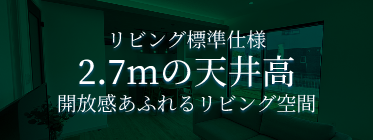 一般的な2,400mmに対して2,700mmを基本採用。視界が広がり、開口もワイドに確保。光と風、そして伸びやかな開放感を実現します。