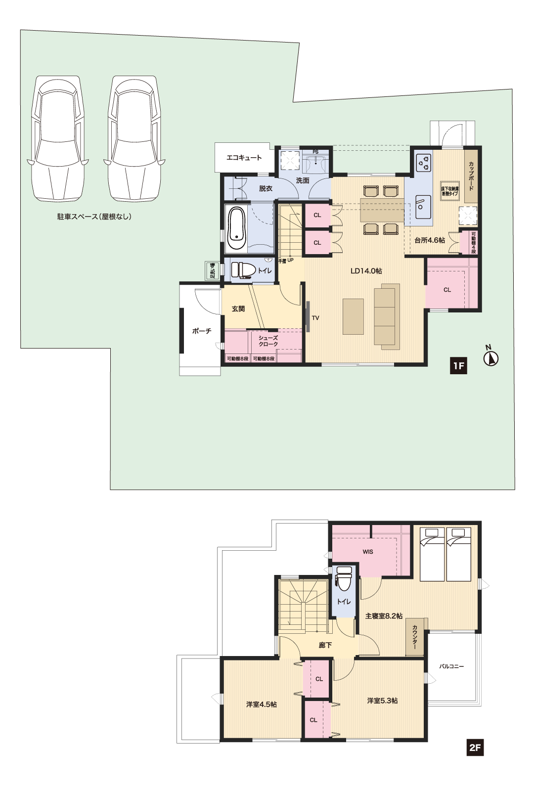 並列駐車2台分確保!敷地も60以上でゆったりとした生活が楽しめます