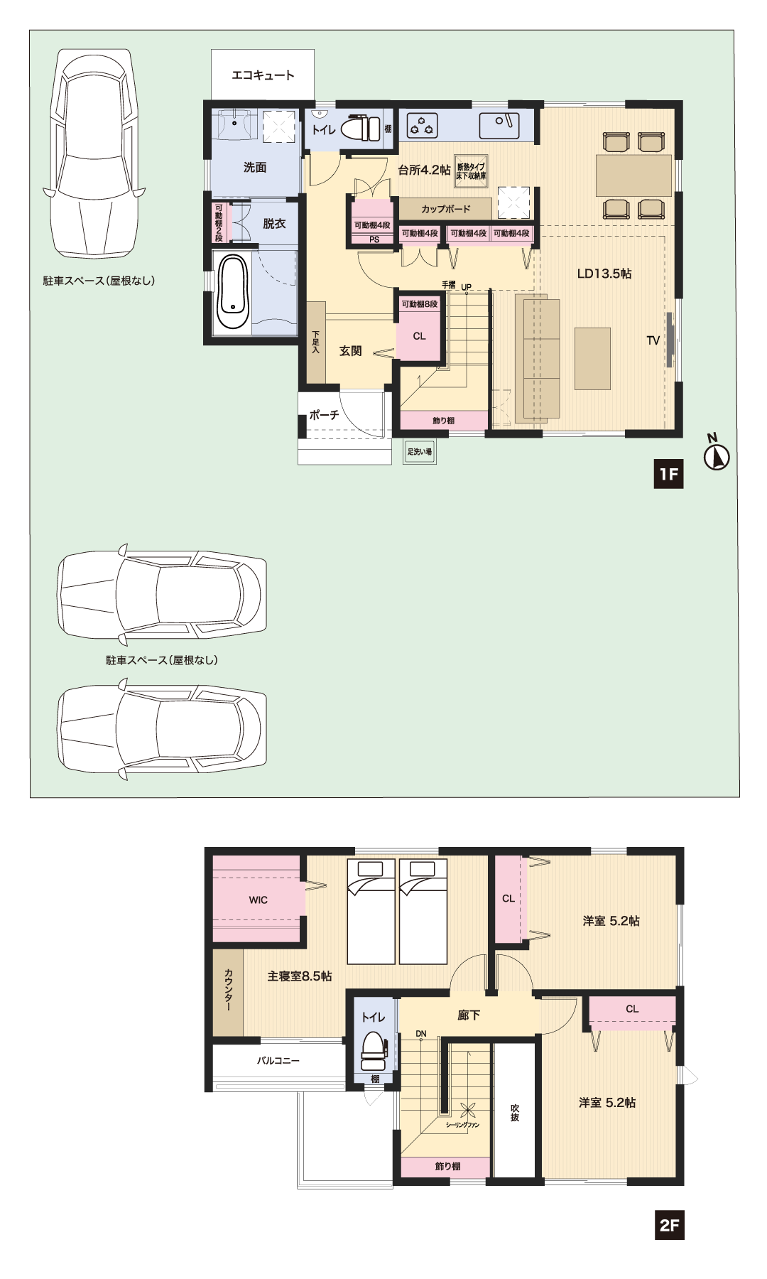 家族が集うリビングに圧倒的な開放感のある中2階風の吹抜けと各収納量がとにかく豊富